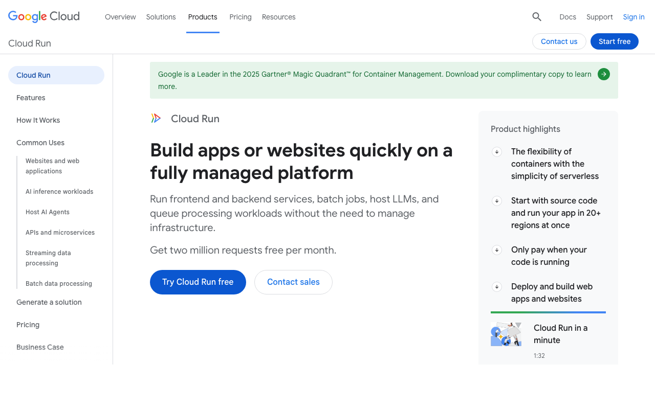 Teams already on Google Cloud, applications with variable or spiky traffic, and developers comfortable with Docker who want true pay-per-use pricing.