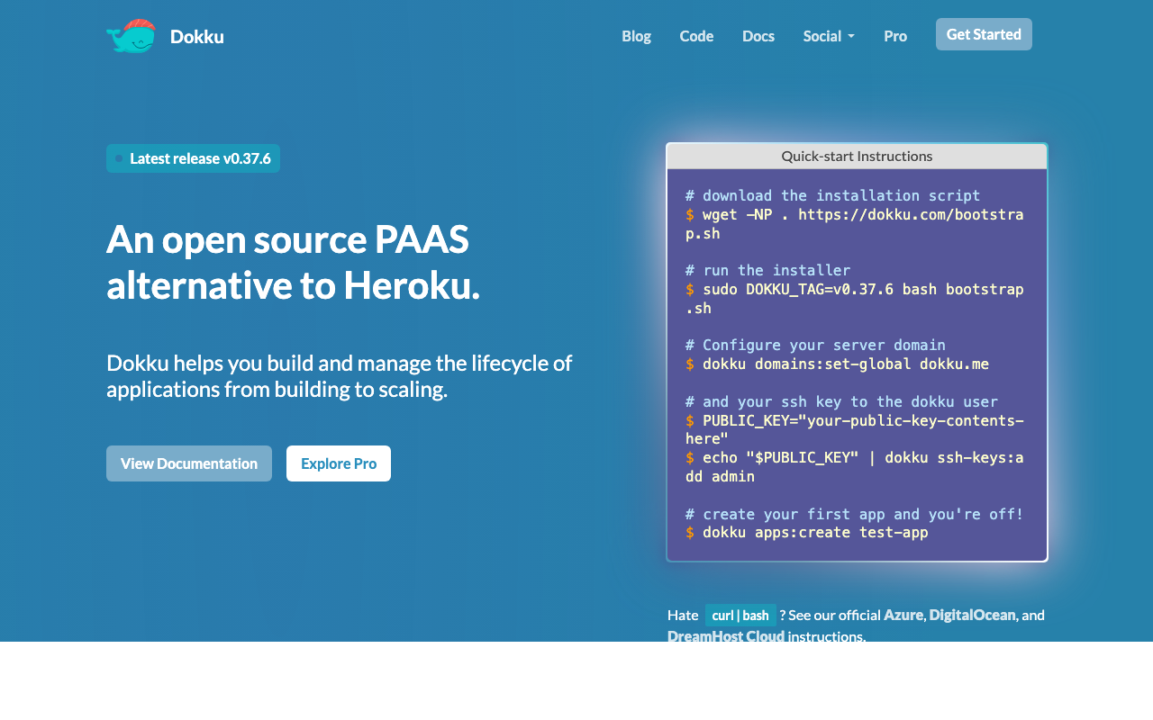 Dokku is the OG self-hosted Heroku alternative, and it's still going strong. It's essentially a bash script that gives you Heroku-style git push deployments on your own server, powered by Docker and Heroku buildpacks. If you loved Heroku's workflow but hated the price, Dokku gives you exactly that for the cost of a VPS.